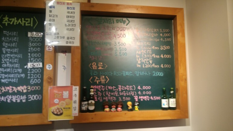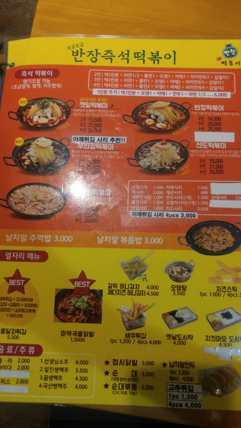 메뉴판이 따로 있긴하지만, 칠판에 적어두셔서 반장떡볶이만의 분위기를 잘 살려놓았습니다.