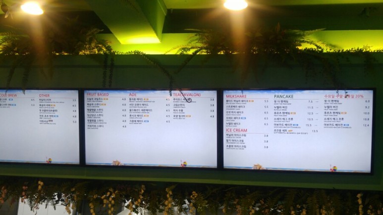 메뉴판 입니다. 다양한 메뉴들이 있는데, 사장님이 콜드브루와 팬케이크를 추천해 주시더라고요. 그런데 저희는 식사를 하고 가서 팬케이크 말고 다른걸 골랐어요.