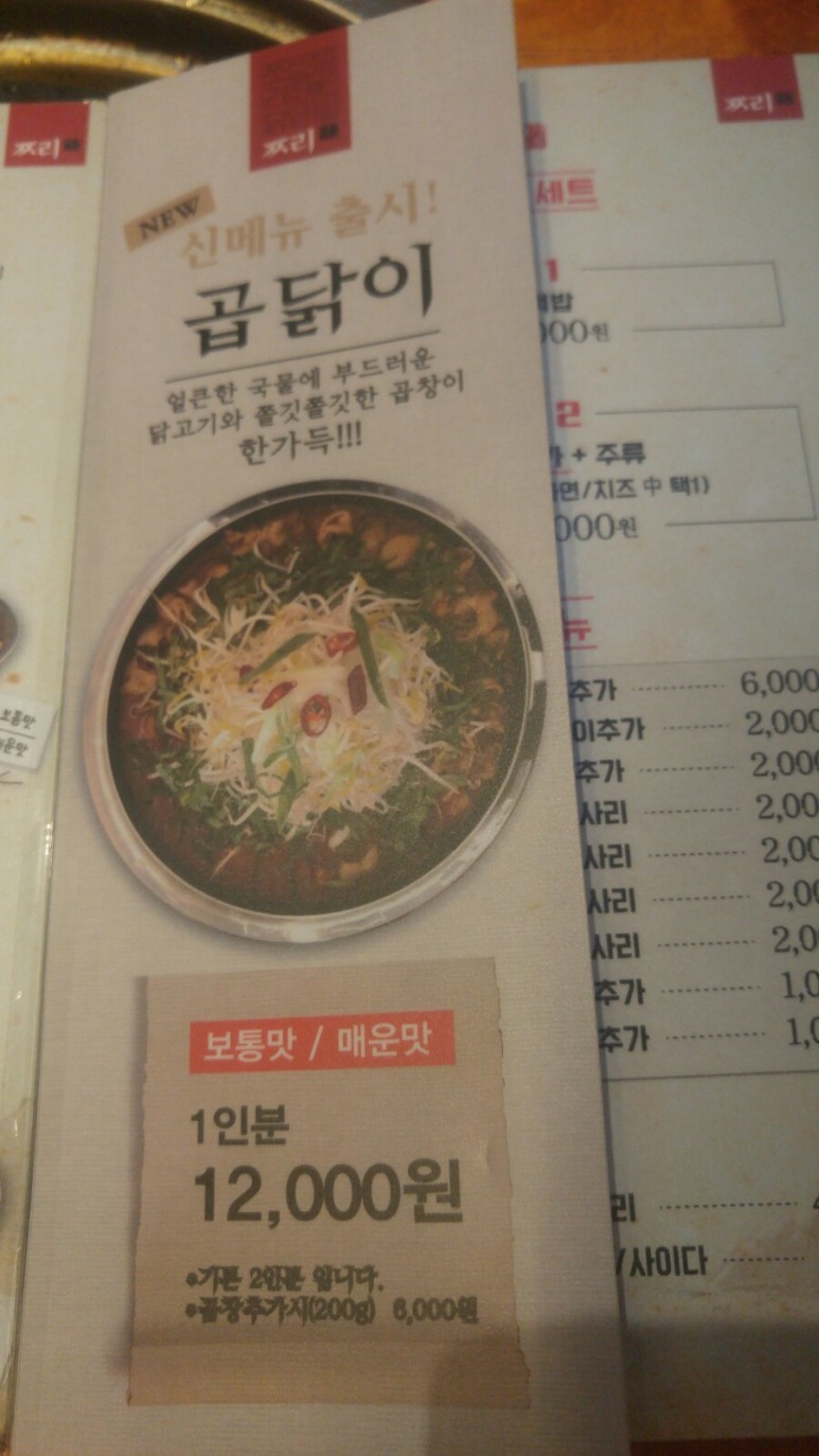 곱닭이라는 신메뉴가 있다고 합니다.