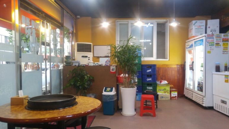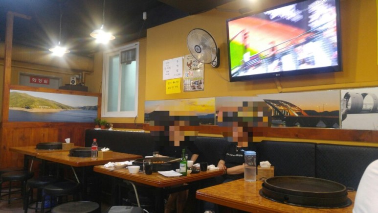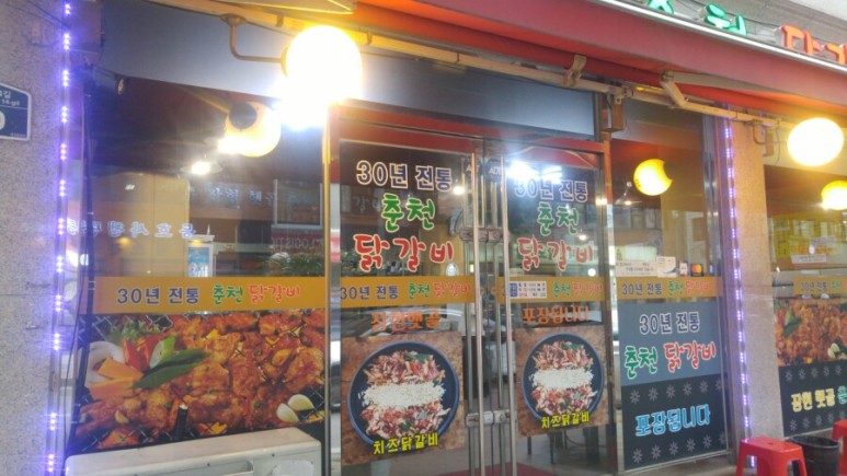 가까이서보니 상호가 너무도 잘 보이는 외관입니다. ㅎ 문에 치즈닭갈비라고 보이는데, 사실 저희는 저걸 먹으러 왔습니다. 어디 프랜차이즈닭갈비에서 비슷한 비주얼의 치즈닭갈비를 파는데 먹어보고 싶었거든요.