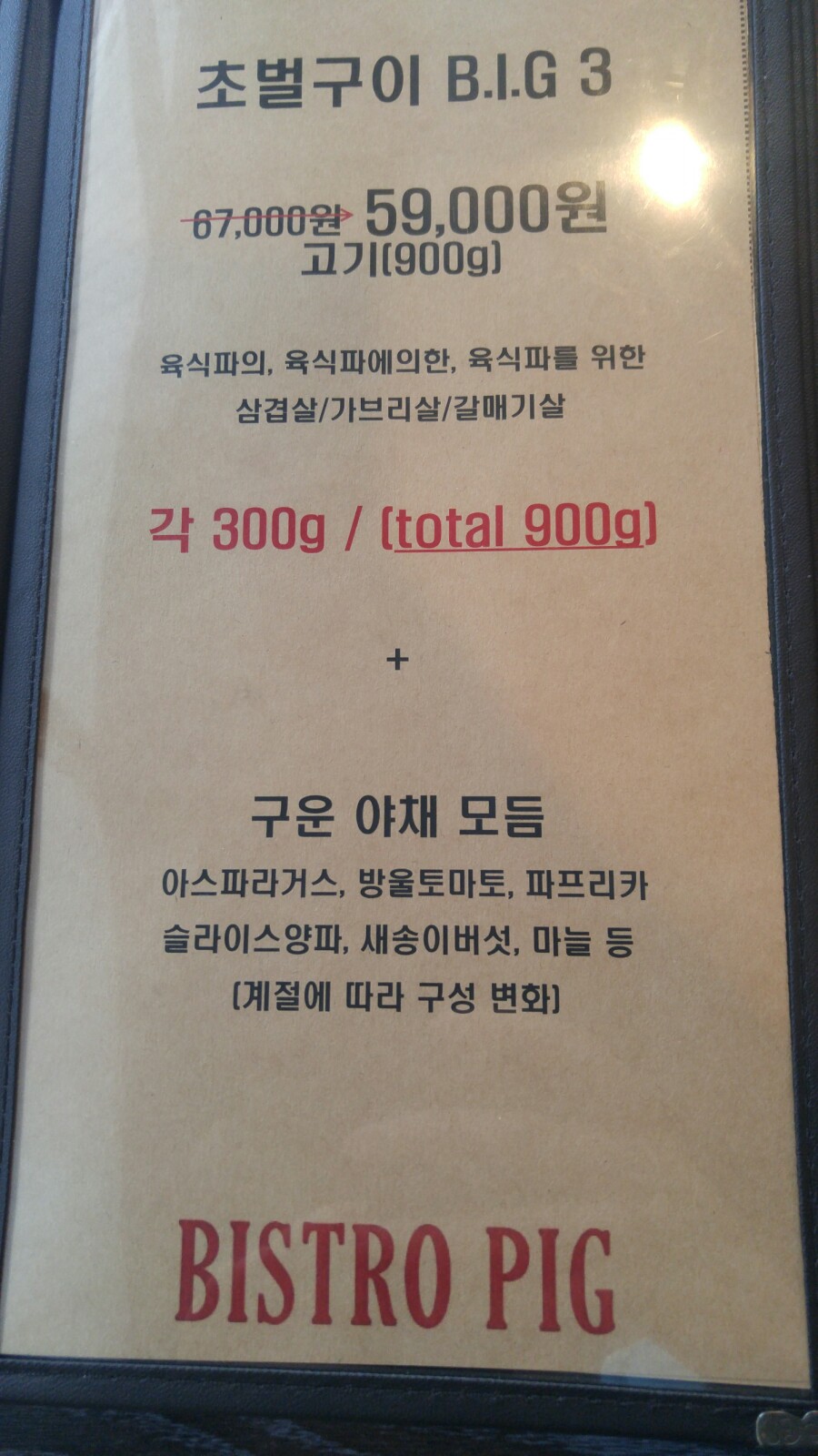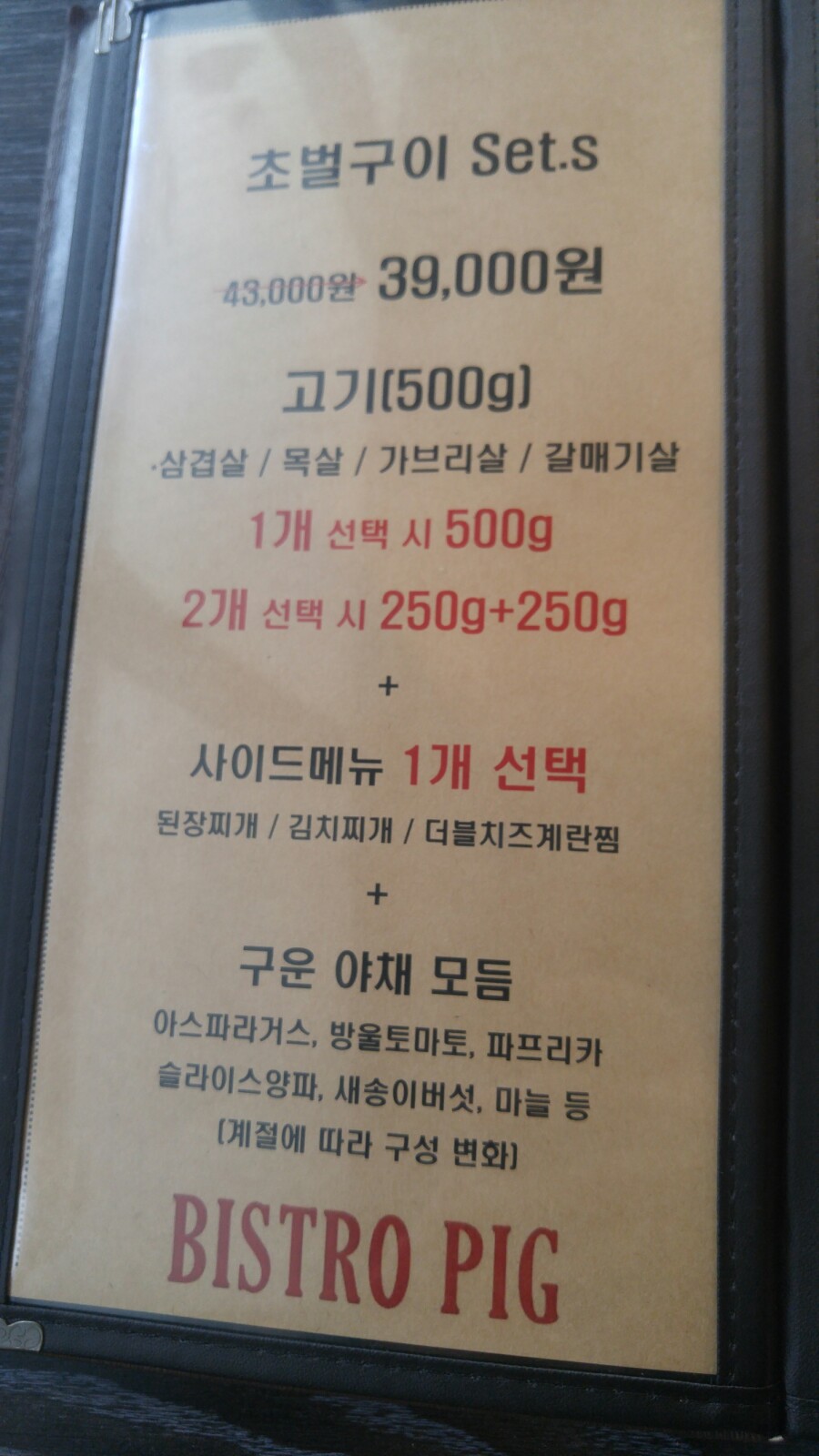 깔끔한 분위기에 신뢰가 가는 '비스트로 피그'. 고기까지 구워줘서 냄새나지 않게 잘 먹을 수 있었어요. 고기 맛 있게 잘 굽기 어려워 하시는 분. 냄새 배는거 싫으신 분들에게 특히 추천합니다.