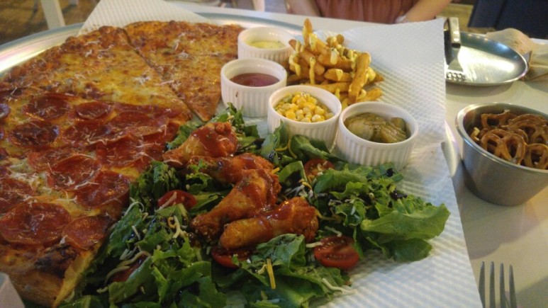 주문한 하프플래터와 맥주입니다. 깜짝 놀랐어요 양이 너무 많아서 ㅎ 둘이서 서너명이서 먹어야 맞을 양 같았어요.